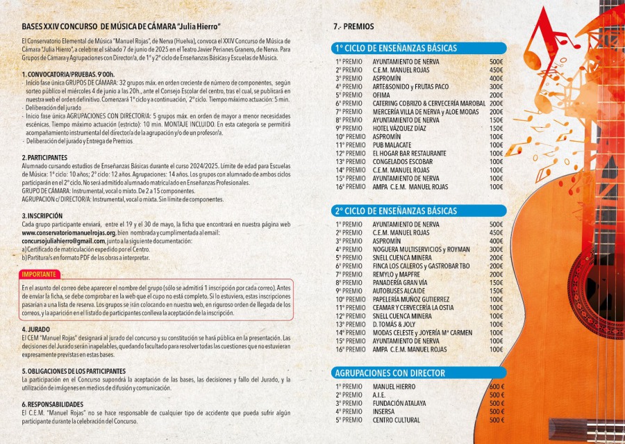 ORDEN DE ACTUACIÓN EN EL CONCURSO DE MÚSICA DE CÁMARA “JULIA HIERRO” 2025.